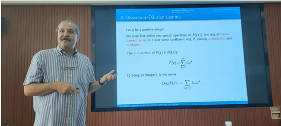 Schlosser教授从整数的分拆的概念以及Ramanjuan关于分拆的三个著名同余式谈起,主要介绍了他最近做的一项工作Dissection-Dilution引理以及该引理的q-模拟。从他的这项工作可以推出Babbage同余式以及Clark关于Babbage同余式的q-模拟。Schlosser教授还提出了一个有趣的相关猜想,并热情回答了与会者提出的一些问题。报告在一片掌声中结束。