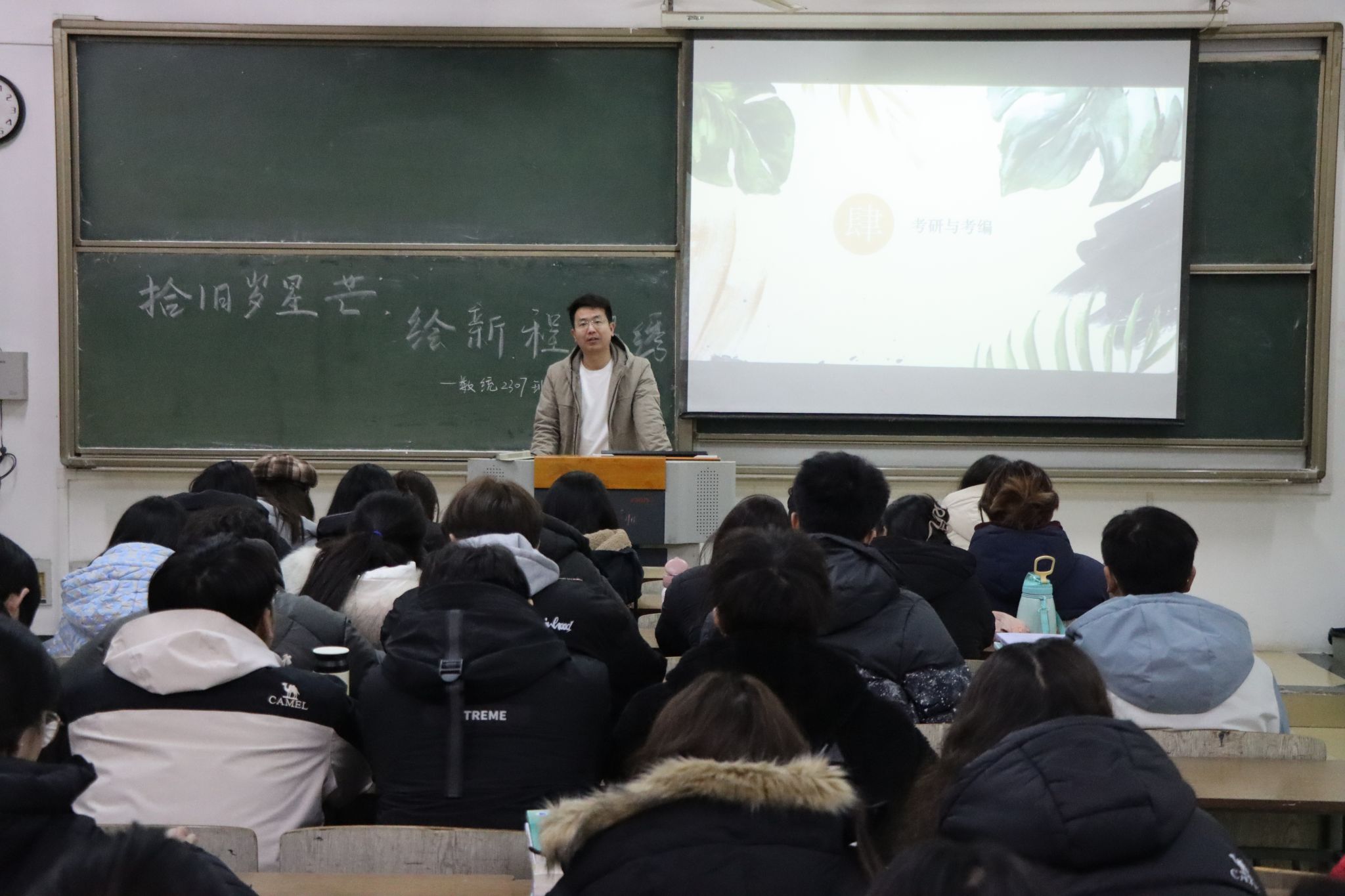 互动环节,班级内以4-6人为一组选派一位同学谈谈自己对考研与考编的看法。同学们从不同角度提出了自己的见解,大家纷纷表示,对未来的目标有了更加清晰的认识。