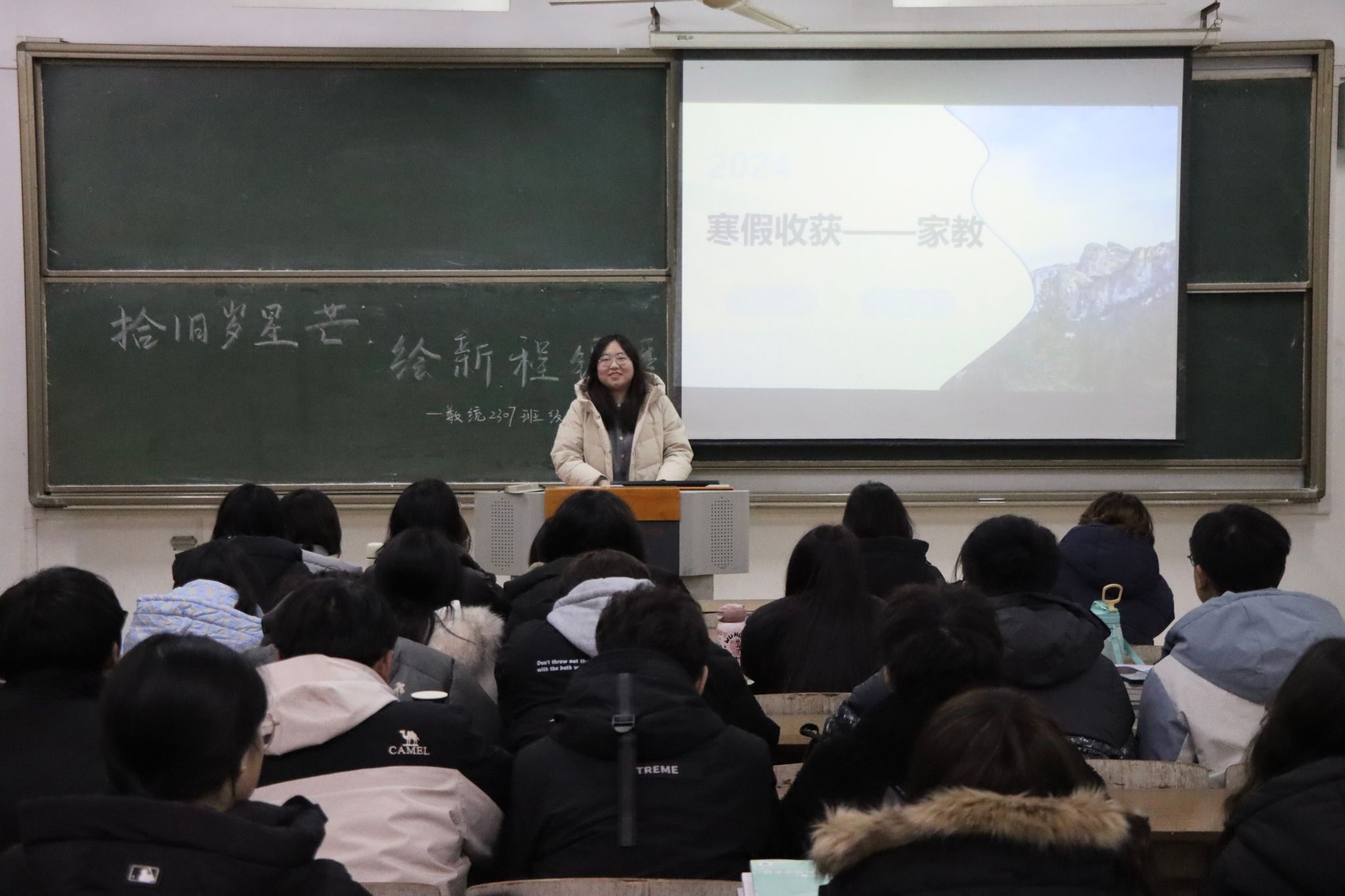 接着,本次活动邀请了几位同学分享在寒假社会实践活动中的心得体会。陆仲宇同学分享了自己回母校讲课的经历,向同学们分享了上好一节课所需要的课前课后准备。包欣然同学就自己的第一次家教经历进行分享,向同学们展示了一段丰富的家教历程,并鼓励同学们们利用家教活动来锻炼自我。李顺达同学分享寒假在银行见习的经历,介绍了银行的工作内容及运营机制,同时也分享了自己对这个职业的理解与感受。葛悦悦同学分享寒假两份兼职经历。做奶茶店后勤,体验了团队协作,熟能生巧的重要性;转战穿戴甲制作,对亲身实践有了更进一步的认识。