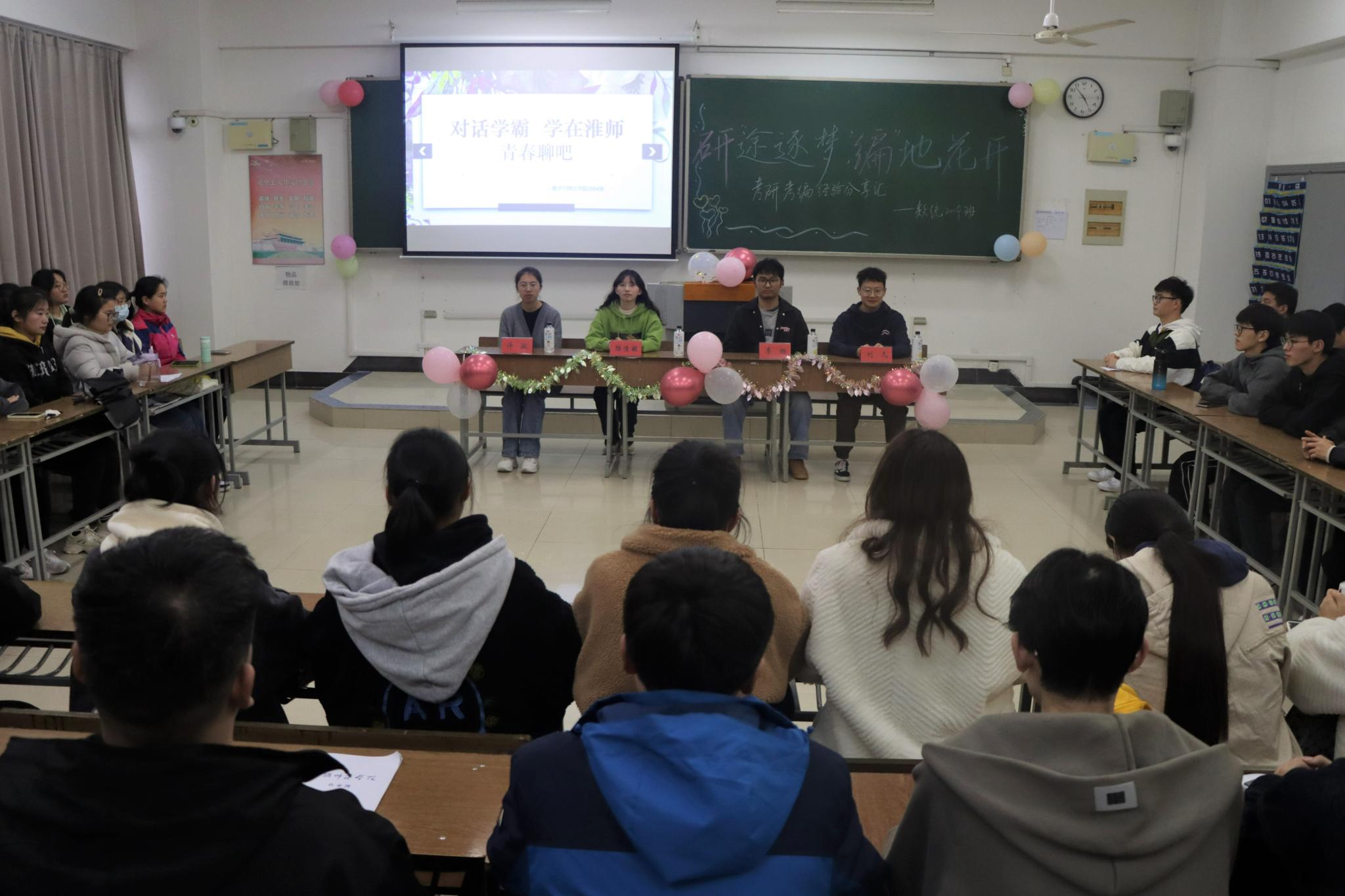 活动尾声,提问环节,满翊,朱青淞,陈成等同学向学长学姐提出问题,学长学姐一一回答,让我们的问题都得到了有效解决,令人受益匪浅。最后,主持人指出选择比努力更重要,希望大家加油,都能顺利上岸!