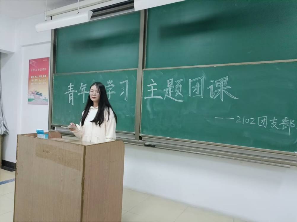 活动最后,由杜全慧和周洪娟作为团员代表上台演讲,杜全慧指出:“作为新时代青年,我们要坚定不移听党话、跟党走,怀抱梦想又脚踏实地,敢想敢为又善作善成,立志做有理想、敢担当、能吃苦、肯奋斗的新时代好青年。“此外,周洪娟同学提到:“我们要认真学习贯彻党的二十大精神,牢记习近平总书记嘱托,坚定理想信念,筑牢精神之基,厚植爱国情怀,矢志不渝跟党走,以实现中华民族伟大复兴为己任,增强做中国人的志气、骨气、底气,不负时代,不负韶华。”
