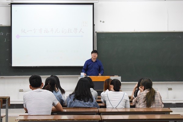 聘任仪式过后,四位导师分四个会场从不同角度为17、18级师范专业学子开设讲座。淮安市外国语实验小学孙政老师讲座主题为“新时代 新教师 新作为”,强调新时代数学教师的使命感;淮安经济开发区开明中学李成兄老师从“怎样让你的员工学好数学”的角度,引导员工注重数学教师的教学理念培养;淮安市开明中学于志富老师讲座主题为“做一个幸福平凡的数学人”,引导同学感受作为一名数学教师的职业幸福度;沭阳如东中学洪兵老师讲座主题为“博观约取 厚积薄发----做不一样的当代师范生”,强调作为一名师范生,要有终身学习的理念,与时俱进。讲座内容丰富,涉及面广。