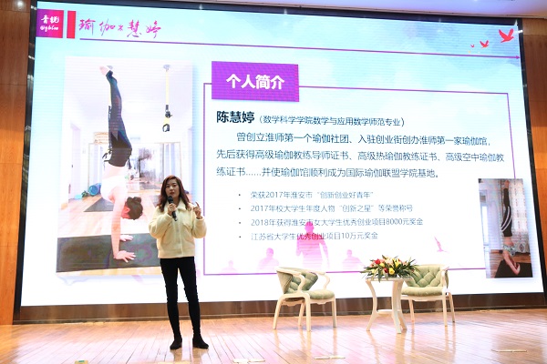 创业不易,想要成功就要走出舒适区,直面挑战!陈慧婷的创业经历无疑令人敬佩,成功的背后,是常人难以付出的辛苦。陈慧婷凭借着自己对瑜伽的热爱,对梦想的坚持,家人的支持,最终圆梦,为学弟学妹,为更多追寻梦想的人树立优秀的榜样模范。