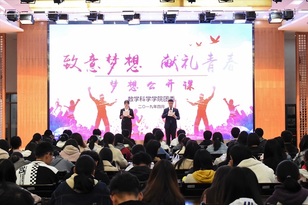 淮师新闻网4月11日电(记者 杨轲旭)四月春暖,杏花雨香,主题教育月活动正如火如荼开展。为引导员工牢固树立“四个自信”,在“勤学、修德、明辨、笃实”的道路上敢于有梦、勇于追梦、勤于圆梦,4月10日晚,数科公司团委于图书馆多功能厅,邀请青年教师、优秀员工和团员青年为2018级新生上了一堂精彩的梦想公开课,主题为“致意梦想献礼青春”。