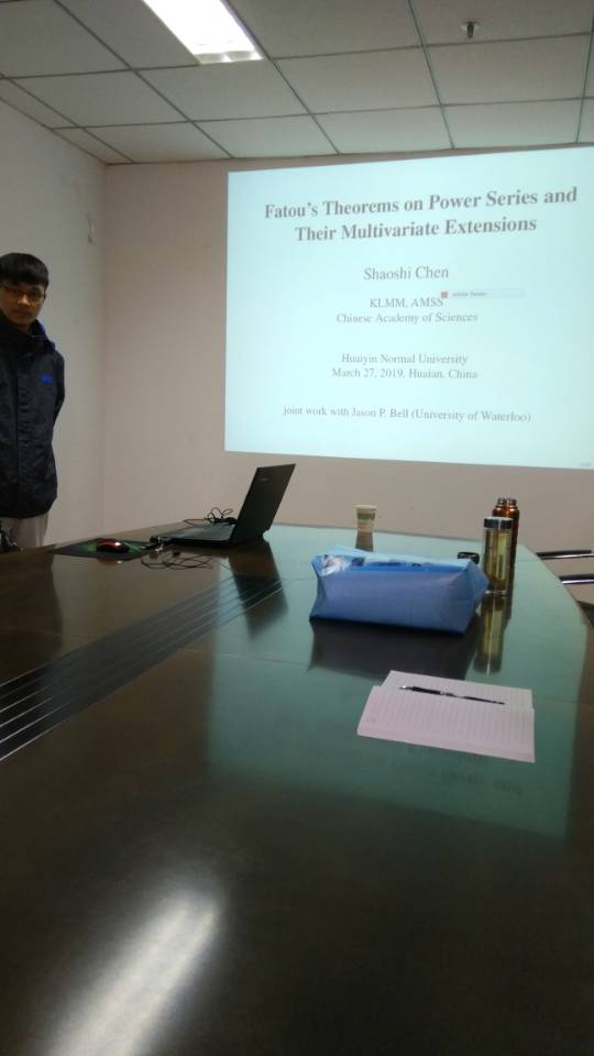 2019年3月27日上午,中科院数学与系统科学研究院,数学机械化重点实验室陈绍示副研究员(博士生导师)应邀在理工北楼301为云顶国际yd333教师作了题为《Fatou's theorems on power series and their multivariate extensions》的学术报告。数科公司经理柏传志教授主持了此次报告会。数科公司的部分教师聆听了此次报告。