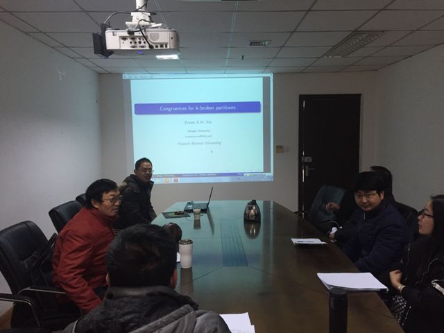 夏老师在第一场报告中介绍了由Andrews和Paule引进的自然数n的一种分拆,并利用theta函数恒等式、Ramanujan模方程和Newman理论证明这种分拆数的一些同余式;在第二场报告中夏老师利用 theta函数恒等式证明了Chan关于Appell-Lerch和的一些同余式猜想, 并推广了Chan的一些结果。