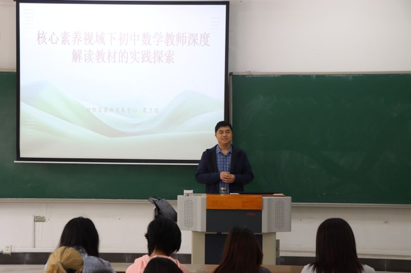 为进一步加深师范生对教材教法的理解,传授职业感悟,指引职业发展方向,4月8日,云顶国际yd333邀请宿迁市高中数学学科带头人,泗阳县教师发展中心团队发展科科长葛卫国老师来校举办“核心素养视域下初中教材解读能力的实践探索”师范生素质能力专场报告。
