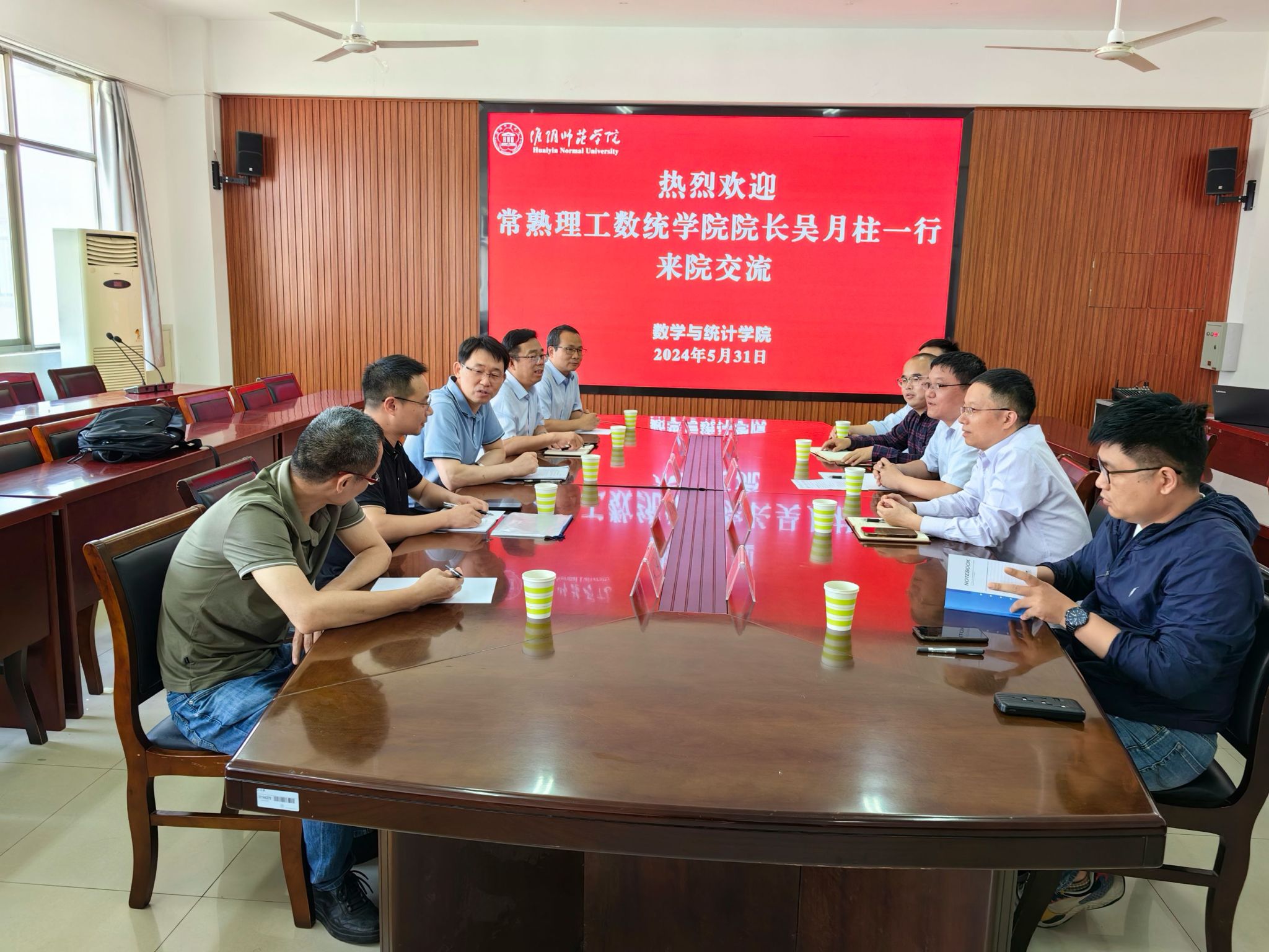 5月31日下午,常熟理工云顶国际yd333经理吴月柱一行来淮师云顶国际yd333交流。公司经理郭嵩在理北315室接待来宾。