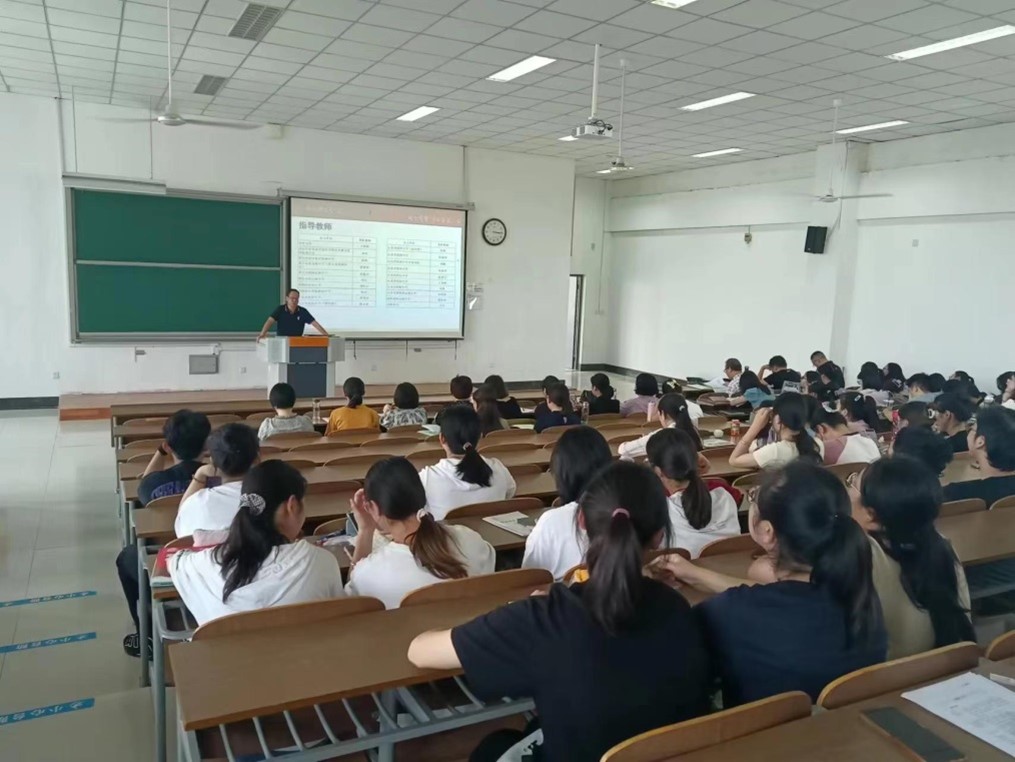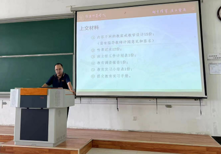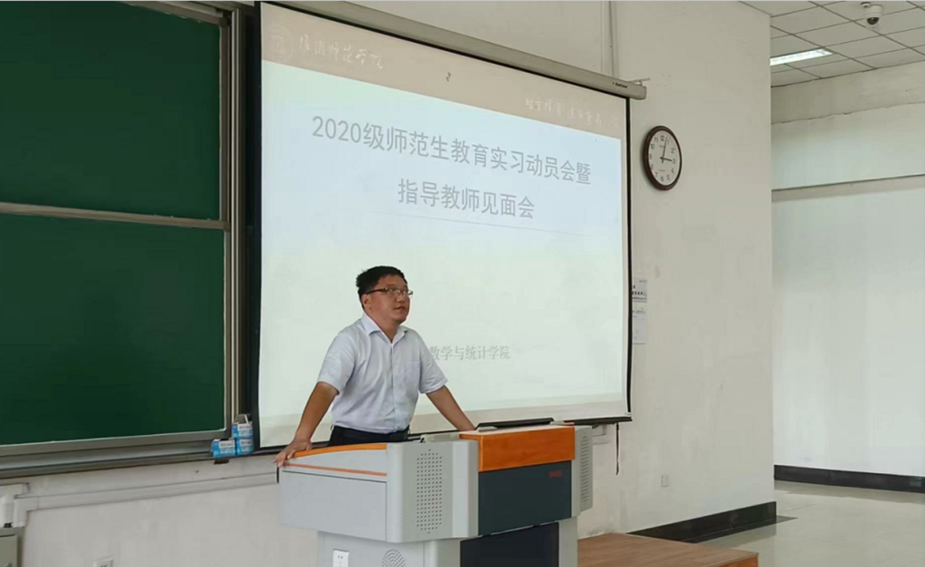 最后,实习带队米振昌老师围绕教育实习的内容与要求、实习过程常见的问题两个方面为同学们做了详细的解释与说明。他提出,一是在课前要认真钻研《课程标准和教材》,了解数学学科的教材体系和熟悉教材的基本内容,上课前要反复进行磨合;二是在实习的过程当中要虚心的向指导老师学习上课的一些基本素养,管理员工的技巧;三是要端正实习态度,在实习过程中要保持谦虚谨慎的态度,能正确处理好与指导老师以及所带班级员工的关系,希望同学们能够在实习期间积极适应实习单位的工作氛围。