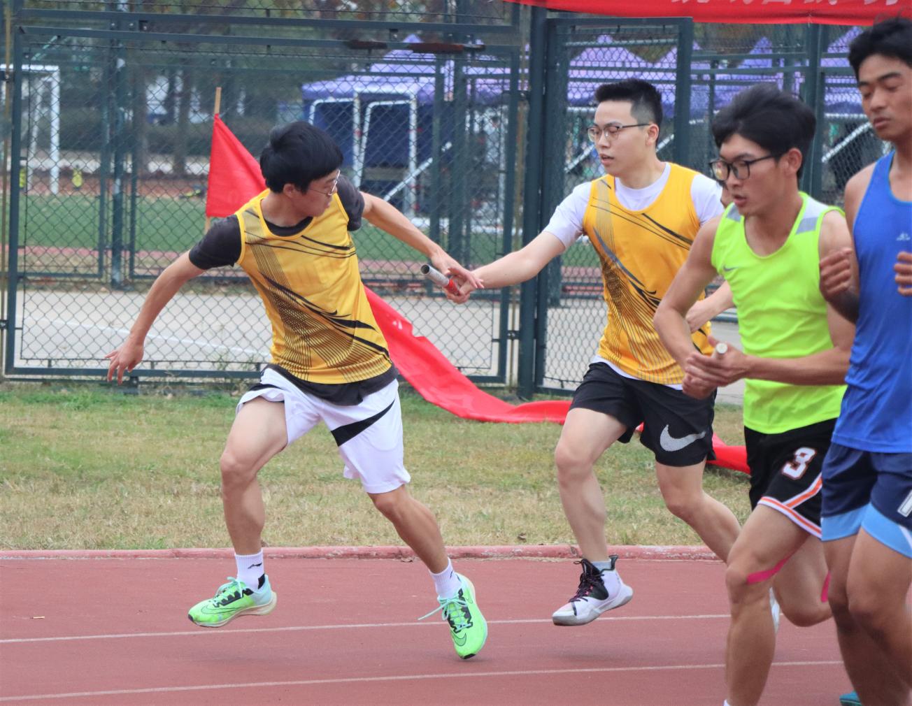 团体接力赛中运动员展现团结的力量,接力棒在运动员们的手中稳稳传递,每一个人都承担着团队的期望,他们一起向终点冲去。志愿者们的加油鼓励是奔跑路上的兴奋剂,助运动员勇创佳绩。最后云顶国际yd333团体接力赛取得了男子4×400第三名,女子4×400第三名,女子10×60第六名,男子10×60第六名,男女混合8×200第六名,男子4×100第七名的好成绩。