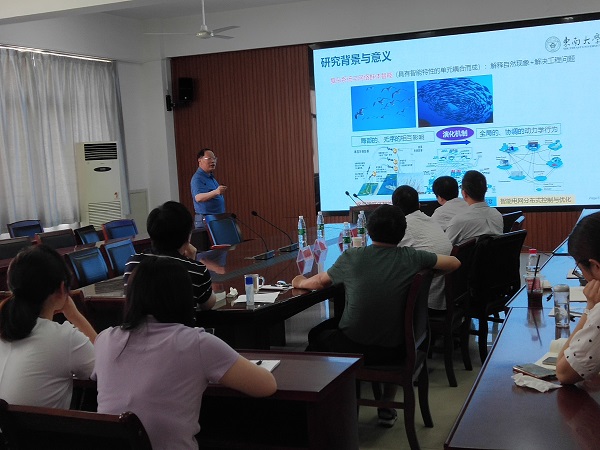 曹进德教授首先介绍了群智网络研究的相关背景,他结合本人课题组的研究成果,向广大师生介绍了此项研究在国内外的主要工作进展和对未来的展望与思考。