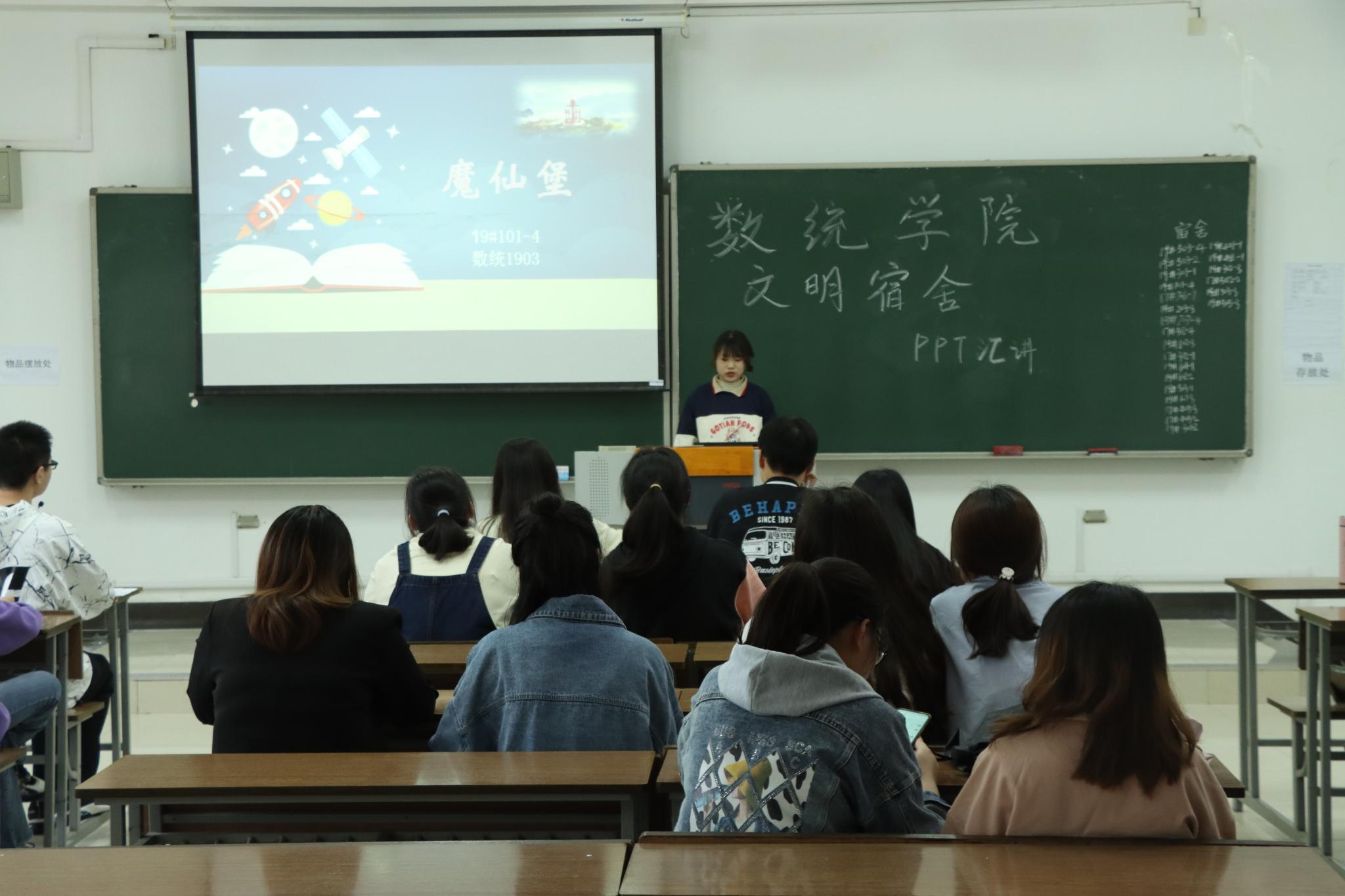 翔宇网5月15日电(记者 黄奕菲 吕玮然)为进一步推进宿舍文明建设,营造温馨舒服的寝室环境,加强员工的文明修养,5月14日中午,云顶国际yd333于理工南楼103、101教室开展文明宿舍、星级大厅评选汇报活动。18、19、20级舍长及厅长参与此次汇报。