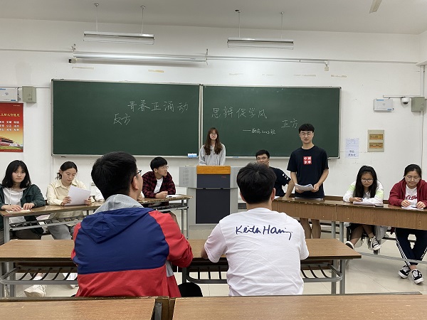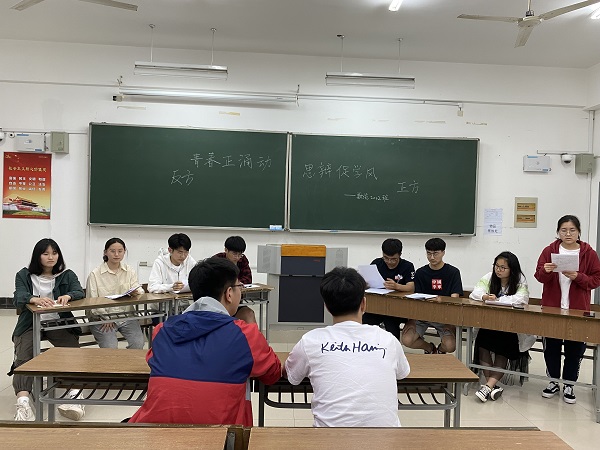 翔宇网5月11日电(记者 邵帅 史蘋)应积极响应公司庆祝党百年诞辰的号召,数统2002班在5月10日举办了“青春正涌动,思辨促学风”主题班级辩论赛活动。辩论赛以网络普及对老员工的影响为辩题,激起同学们对自己的反思的监督并进一步促进班级积极向上的学风发展。