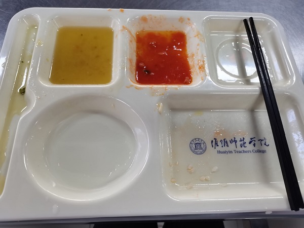 为表现我们时刻在实践着“光盘行动”,在5月9日,2005班的每一位同学都将自己的“光盘”照片拍下以作为记录。碗底不留一点饭粒,菜盘也是干干净净。“光盘行动”中所包含着的节俭精神已牢牢刻在同学们的心中。