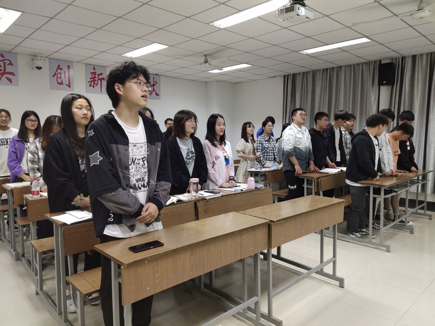 图为全班同学大合唱。记者 周维敏 摄