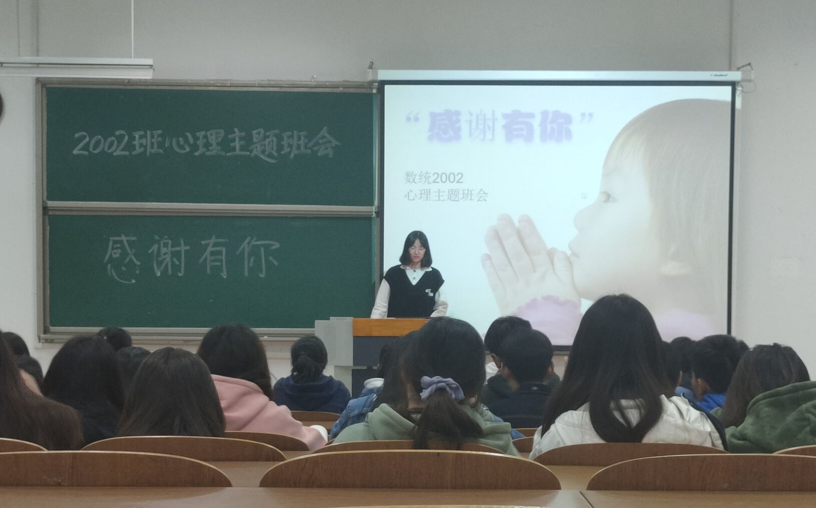2002班开展“感恩有你”心理主题班会。班级开展感恩故事交流会与感恩语录分享,进行你画我猜的游戏,以借助团队协作的机会,能让大家进一步感受合作的力量,将感恩融入游戏,以实际行动来更好地体会感恩的意义。最后由何佳惠同学总结发言,呼吁同学们学会反思曾经忽略他人帮助、未能及时感谢等有待改进之处,大家也表示要以此次班会为起点,真正地学会如何去感恩。