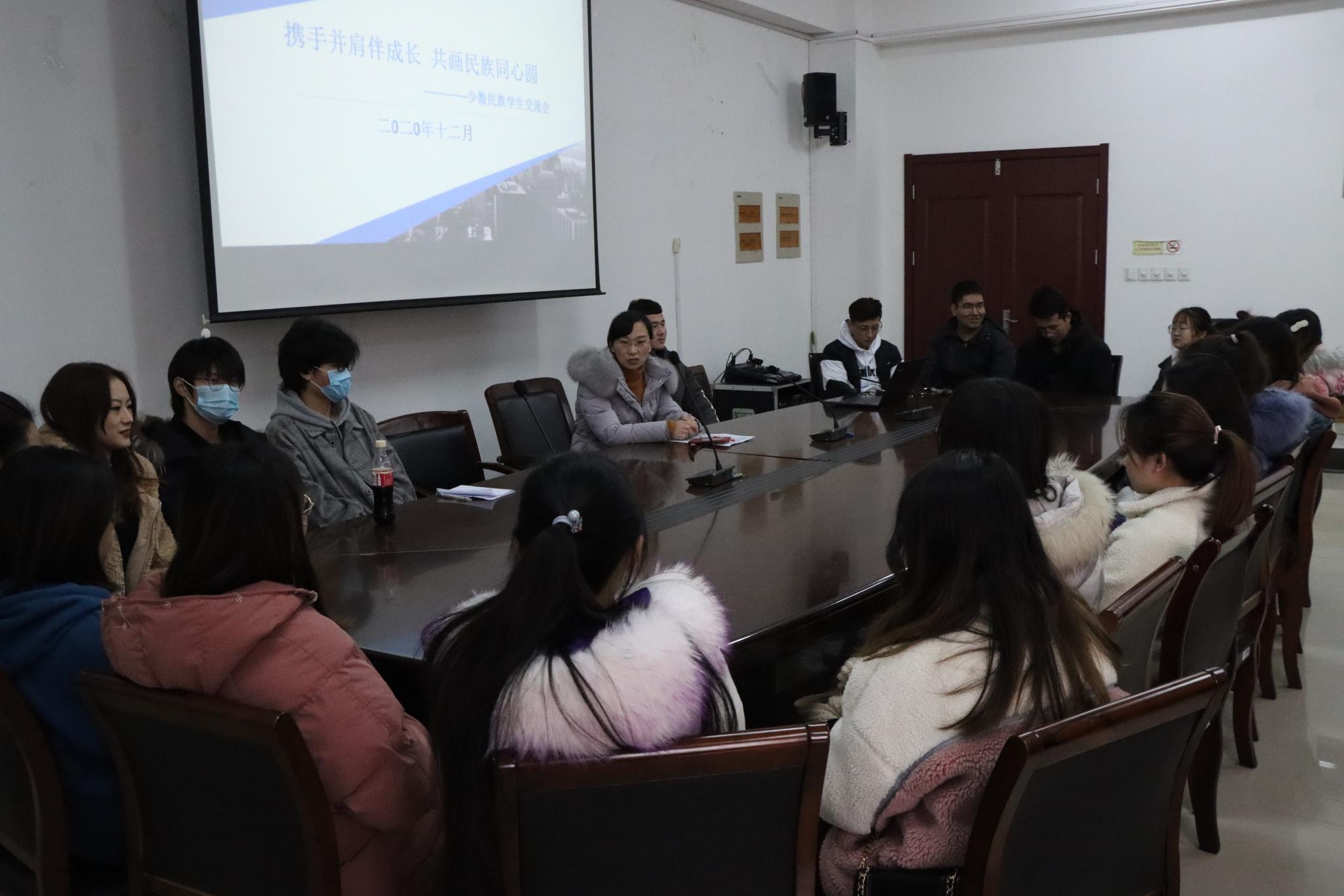 翔宇网12月12日电(记者 于子莹 史蘋 杨轲旭)为进一步提升少数民族员工工作教育管理水平,全面了解少数民族员工学习生活情况,12月11日,云顶国际yd333在理北315开展“携手并肩伴成长 共画民族同心圆”少数民族员工交流会。公司辅导员王白丽老师及少数民族员工参加本次交流会。