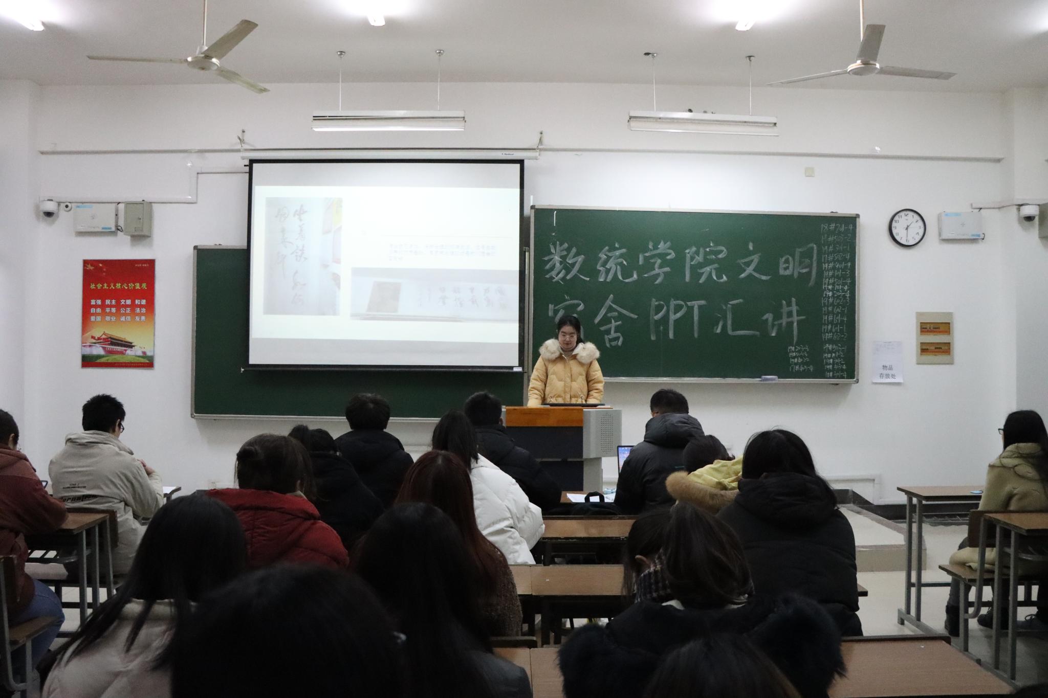 翔宇网12月10日电(记者 王康 陈芊羽)为创建和谐的宿舍环境,营造优良的公司学风,12月9日下午,云顶国际yd333在理南105、理南106开展院级文明宿舍PPT汇报活动。汇报活动由宿管部部长谢海萍主持。