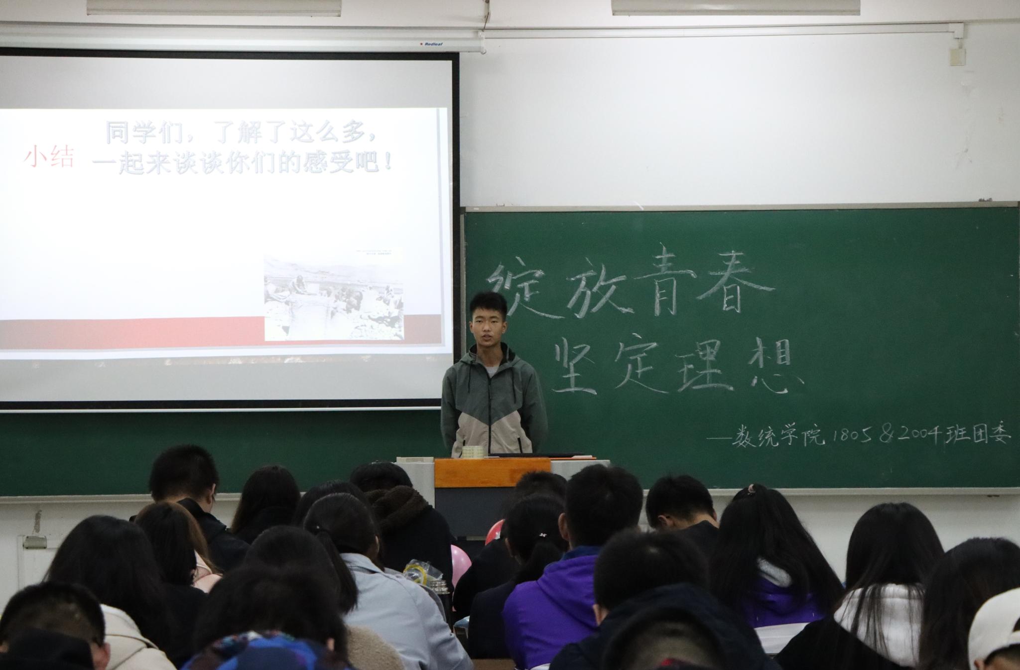翔宇网11月17日电(记者 李雨桐 王康 杨轲旭)11月16日晚上七点,数统1805班与2004班在理南103联合举办“牢记英雄使命,绽放青春梦想”主题团日活动。活动由2004班刘沁怡主持。