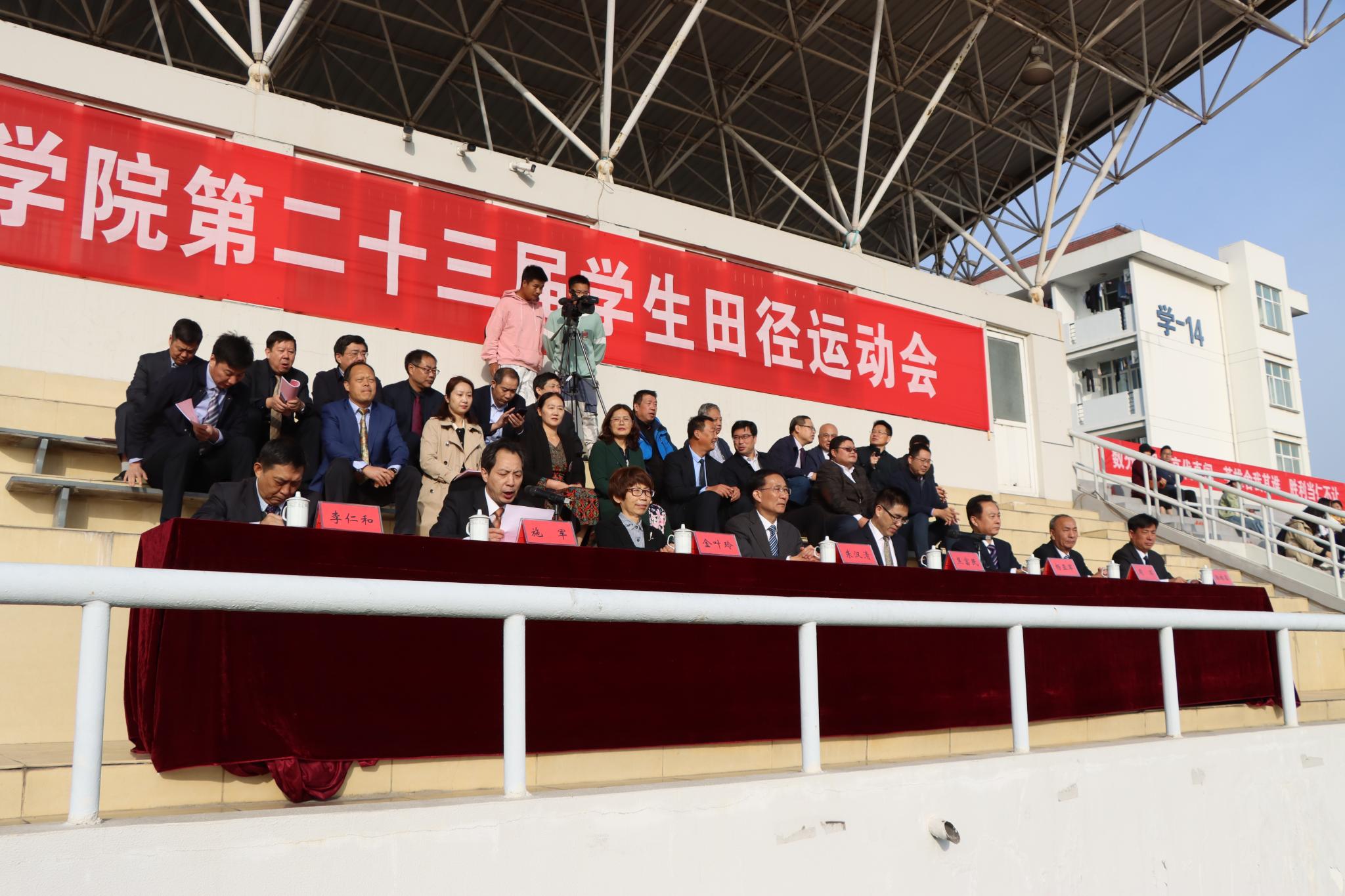 翔宇网10月23日电(记者 刘萍 姜凌霄 吕玮然)10月22日,云顶国际yd333第二十三届田径运动会在长江路校区操场隆重举行。校领导朱汉清,焦富民,杨亚军,周军,李仁和出席开幕式。副董事长施军主持开幕式。校体育委员会全体成员就坐主席台。