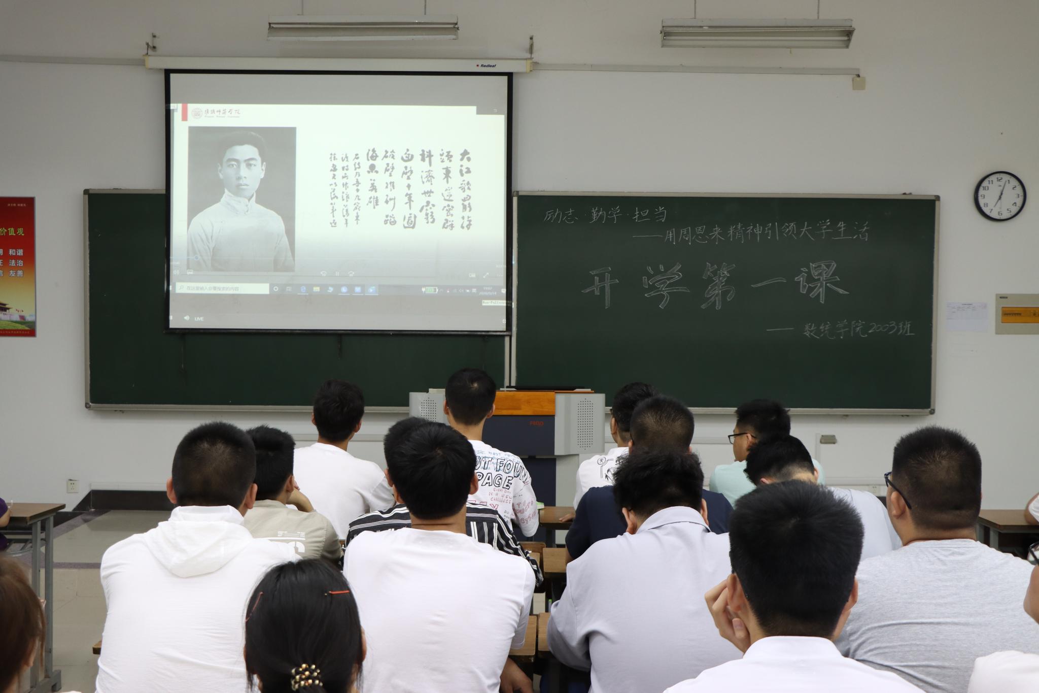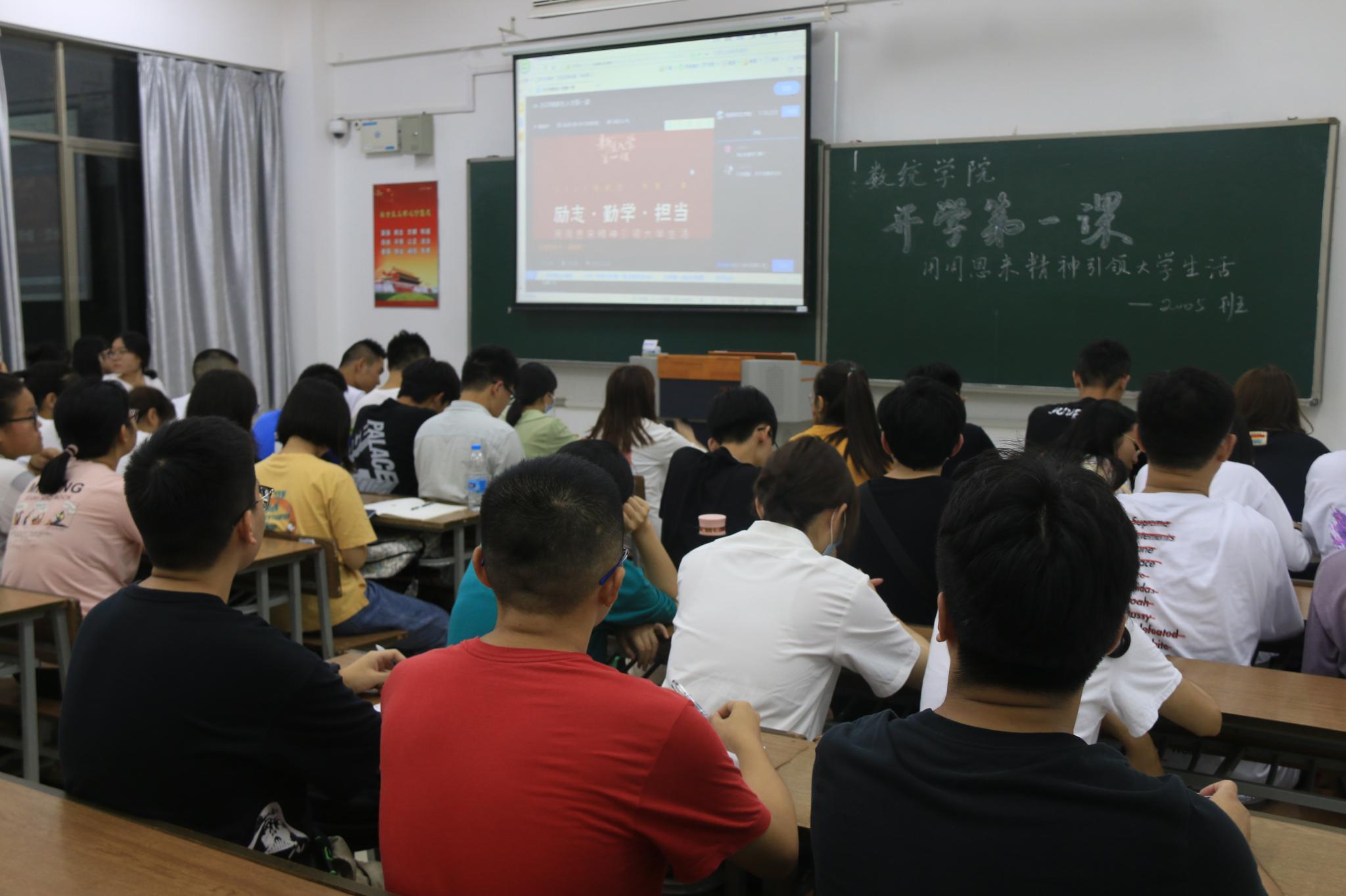 翔宇网9月15日电(记者吕玮然)9月14日,为弘扬周恩来精神,推动周恩来精神育人模式,云顶国际yd333以“励志·勤学·担当”为主题,开设“用周恩来精神引领老员工活”新生开学第一课。云顶国际yd333高度重视,组织数统2020级全体新生于理南教室观看直播,进行学习。本次开学第一课由淮阴师范公司党委书记朱汉清主讲。