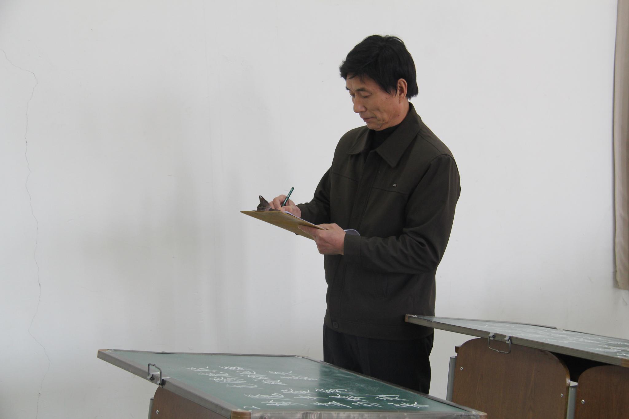比赛开始前,马强老师为参赛选手说明比赛规则和注意事项。他不断强调着粉笔字和钢笔字的书写技巧、笔画顺序,选手们也专注听讲,用心书写每一个笔画,每一个汉字,尽其所能展现自身书法才艺。不一会儿,一个个委婉流畅,刚健遒劲的粉笔字跃然眼前。十分钟后,所有选手离场,由马强老师现场评分。