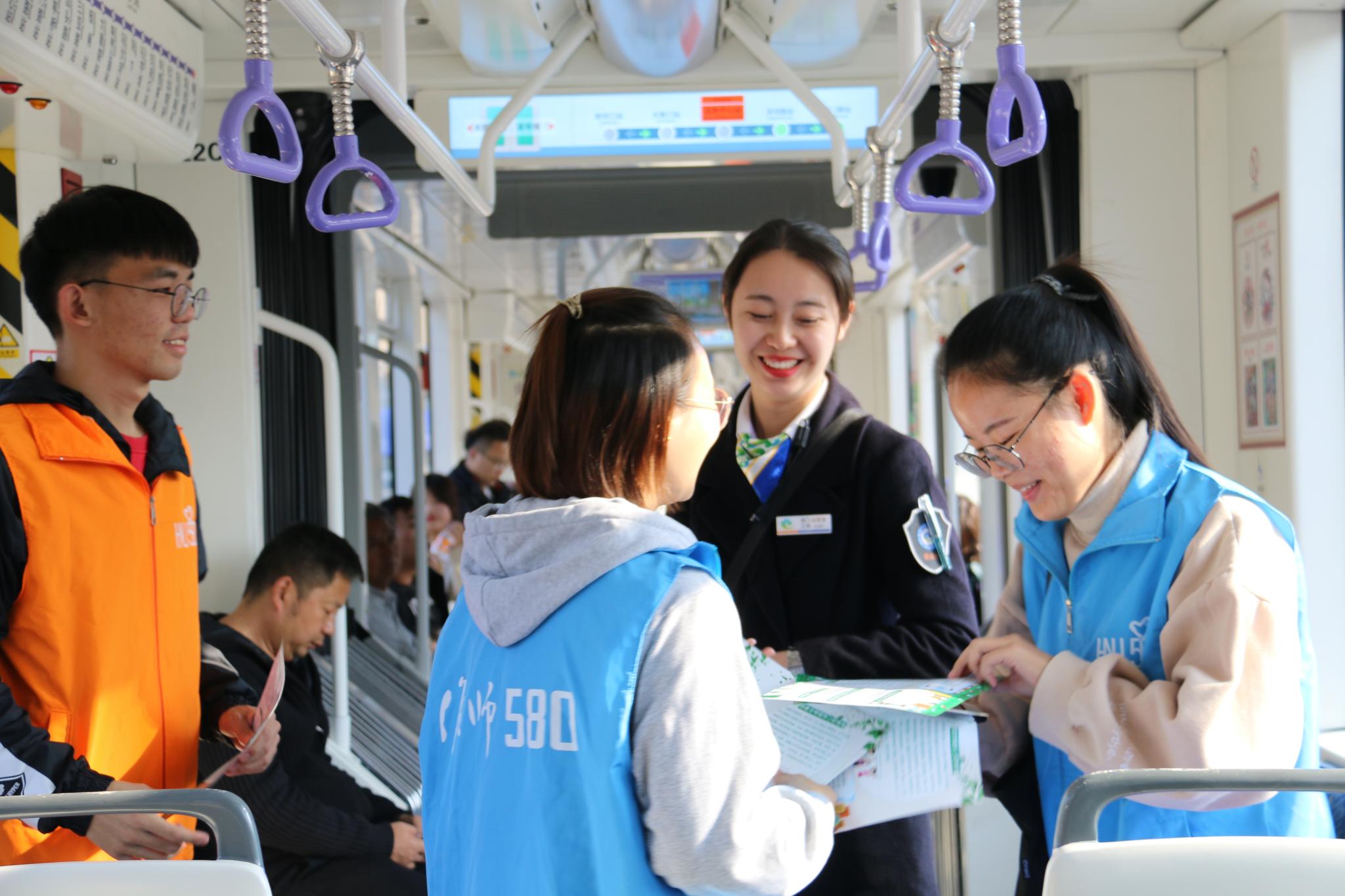 员工党员从公司出发到达有轨电车始发站,在车上向乘客发放宣传单,倡导市民积极进行垃圾分类,注重保护环境。一位员工党员说道:“进行垃圾分类收集可以减少垃圾处理量,降低处理成本,减少土地资源的消耗,有利于社会、经济、生态三方面的良性发展。建立良好的垃圾分类意识,可以使城市环境变得更加美好,人民生活更加幸福安康。”