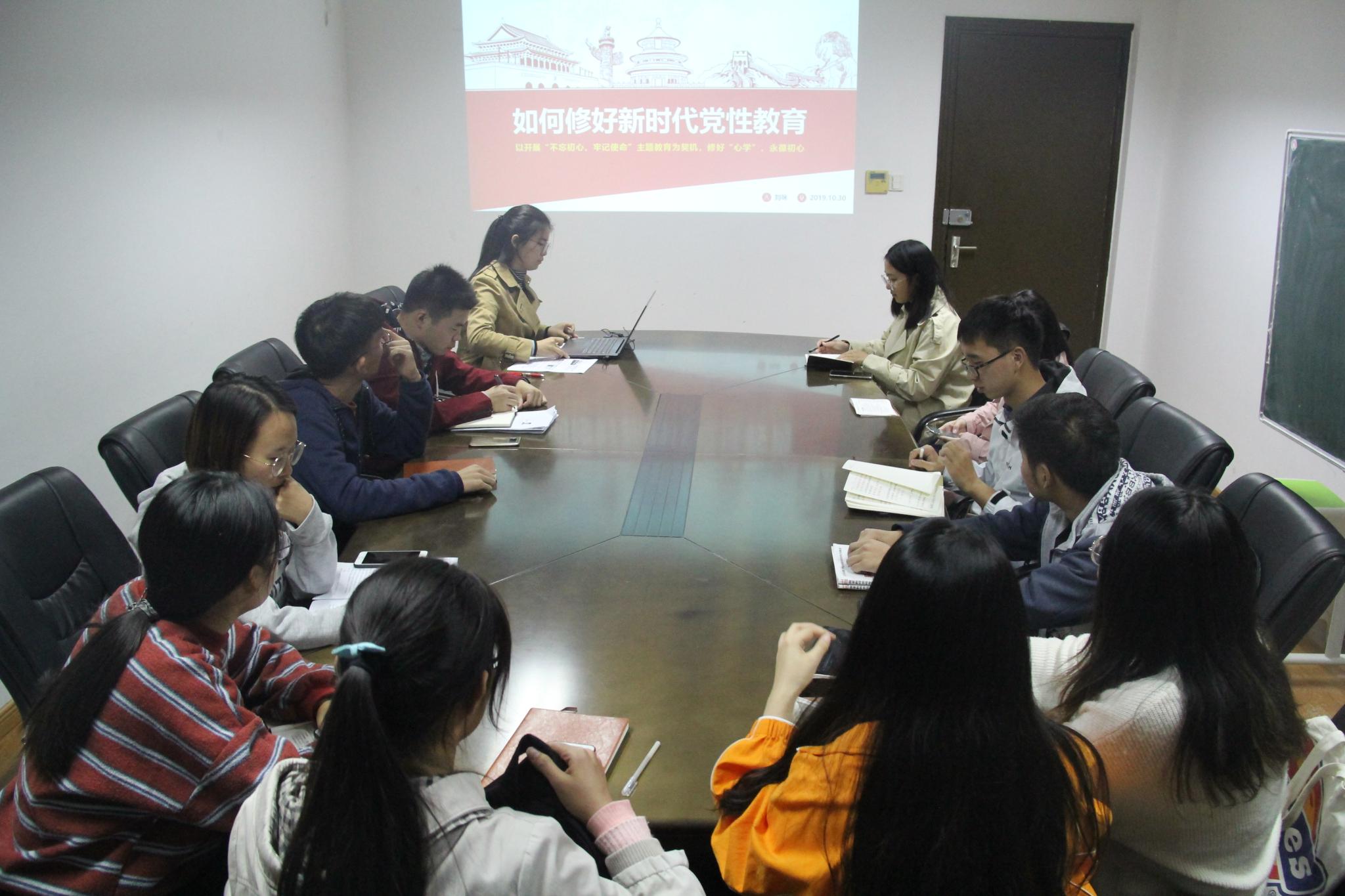 翔宇网10月31日电(记者 杨轲旭)为加强党员党性修养,提高党员政治思想觉悟,10月30日,云顶国际yd333师生联合第一党支部在理北301开展“如何修好新时代党性教育”主题教育党课。本次党课由该党支部书记刘咪主讲,2017级员工党员参加。