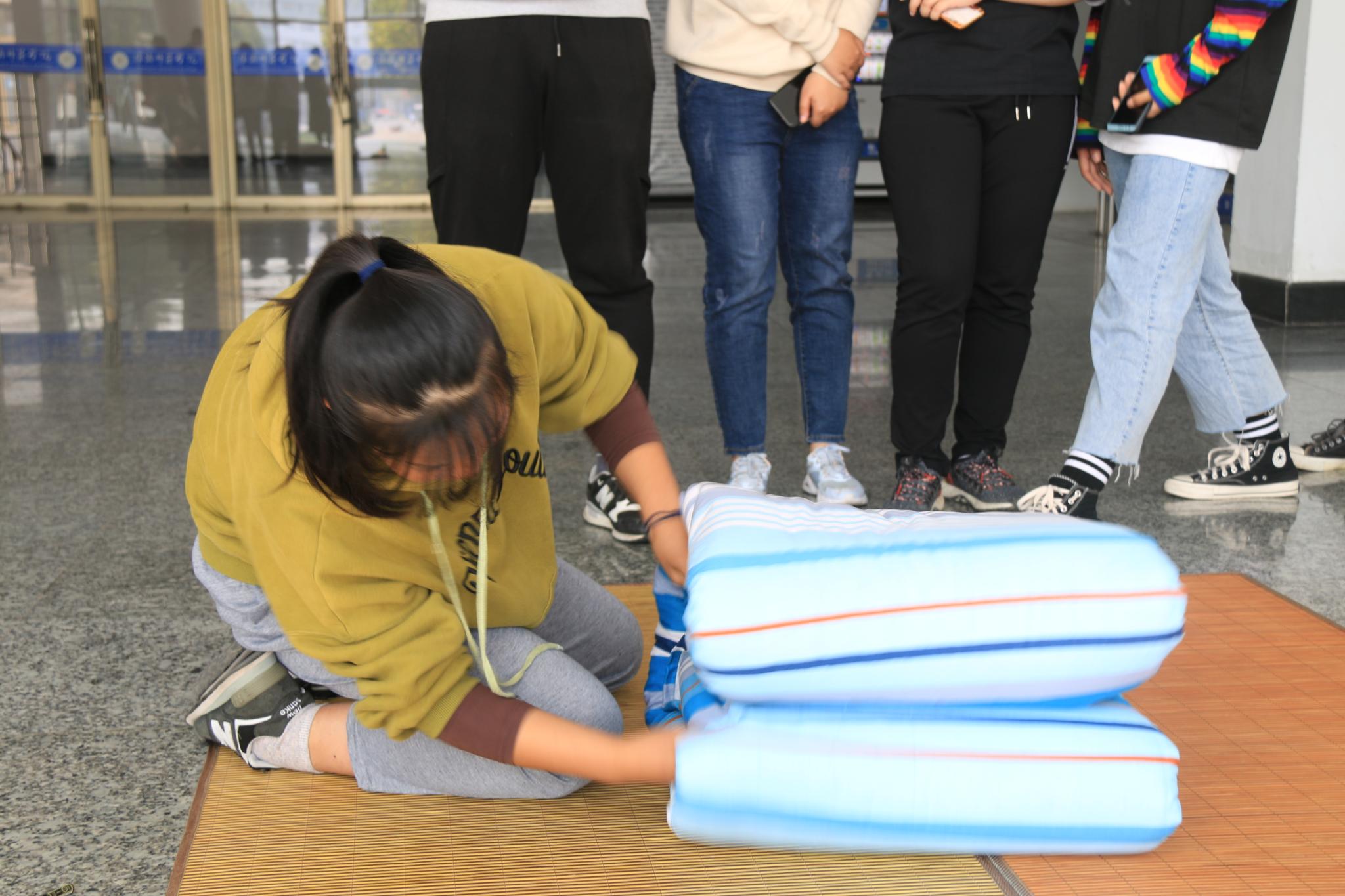 本次“内务大赛”除了考验同学们内务整理的动手能力,还包括“内务知识问答”环节,赛场氛围紧张有序。宿管部各部长及干事全程公正地计时评分,仔细整理数据,以便赛后公布此次比赛结果。