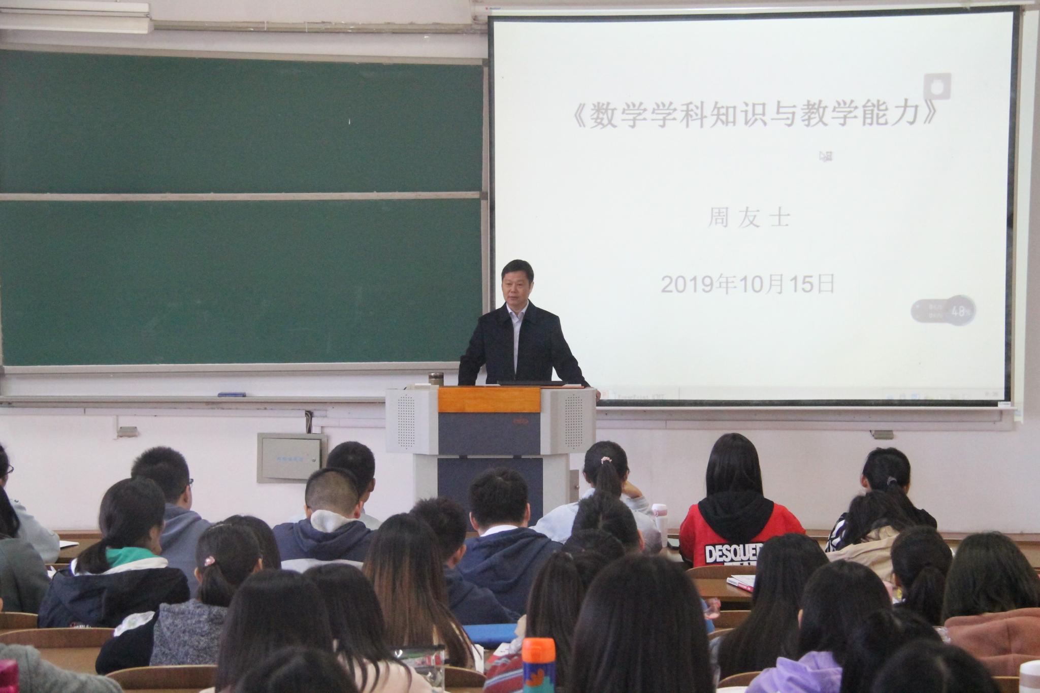 翔宇网10月16日电(记者陶烨 杨轲旭)为帮助员工夯实专业基础,提高教团队格证考试过关率,10月15日,云顶国际yd333在理工西阶103召开“教团队格证考前辅导”讲座。教育科学公司教授周友士应邀主讲,2017级师范班员工参加讲座。