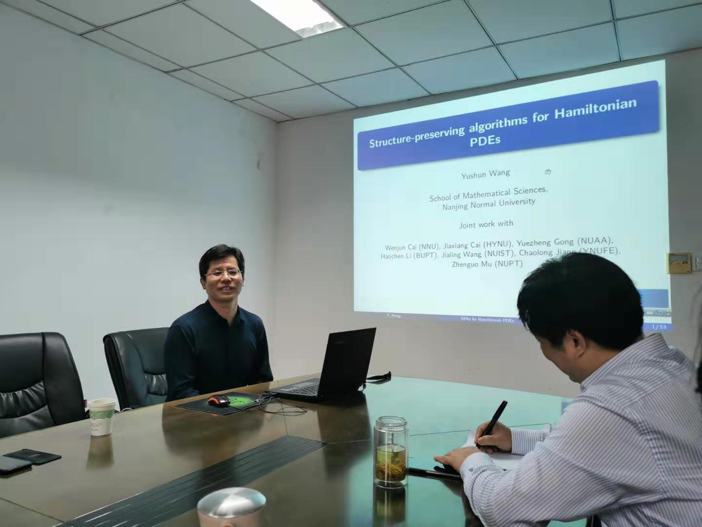 2019年10月12日下午,南京师范大学数学科学公司博士生导师王雨顺教授和严从华教授应邀在理工北楼301室分别作了题为 “偏微分方程保结构算法及其应用”与 “ Linear fuzzifying uniformities”的学术报告。云顶国际yd333柏传志教授主持了此次报告会。云顶国际yd333的部分教师聆听了此次报告。