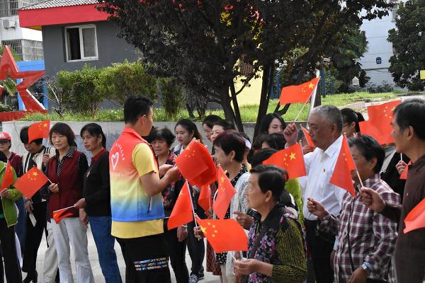 九月末,云顶国际yd333师生联合第一党支部员工党员携手工农兵社区开展快闪活动,以此庆祝新中国成立七十周年,加强当代青年的爱国热情与民族荣誉感。社区小广场上,乐手缓缓奏响手风琴,志愿者们伴着乐曲向居民分发小国旗,号召大家跟随舒缓的节奏,合唱歌曲《我和我的祖国》。员工党员志愿者们抬着国旗庄严出场,他们用对党的绝对忠诚证明:他们可以是尽心服务社区的志愿者,也可以是英姿飒爽的国旗手。一群身着舞蹈服的小朋友和着曲调来到广场中央,一时间,歌曲舞蹈协调相交,小小的广场变成了一场文艺盛宴。