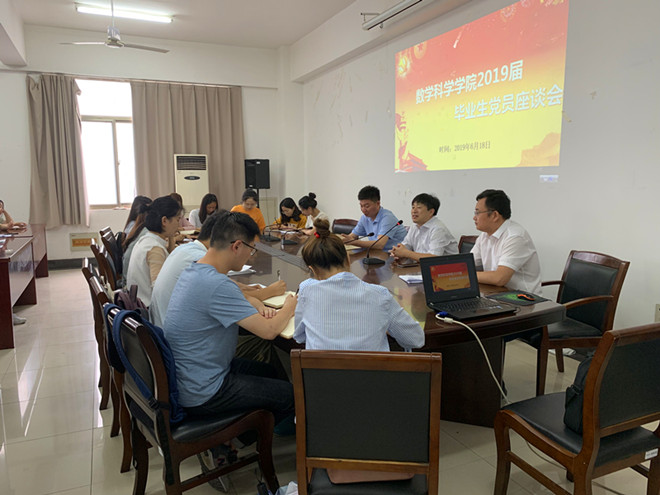 各位毕业生党员畅所欲言。大家从课程设置、活动安排、就业工作指导等方面提出中肯意见和建议,并概述了作为党员应该担负的责任与义务。信息与计算科学专业的王苗苗同学谈到,大学四年来,在参加校园活动中感受到作为一名员工党员该有的责任与奉献,感谢一路走来,公司老师的指导和帮助;统计学专业冯亚楠同学建议公司多开设SAS,Python等软件课程;数学与应用数学专业朱玉同学建议加强“三字一话”和微格教学等实践课程学习。