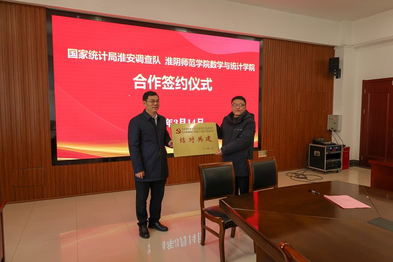 3月14日下午,国家统计局淮安调查队与云顶国际yd333在理工北楼315室举行党建共建暨战略合作协议签约仪式。国家统计局淮安调查队党组书记、队长苏正芳,云顶国际yd333经理郭嵩以及合作双方分管领导出席签约仪式。