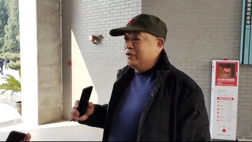 活动过程中,同学们意外遇见退伍老兵并对其进行采访。老兵对同学们提出的问题一一进行解答,他说,“我们国家我们人民有这样的幸福生活来之不易,周总理做了很大的贡献,我们有这样的好总理,千载难逢!要世世代代缅怀总理的丰功伟绩,要永远缅怀周总理,再也不要把他抛弃。”