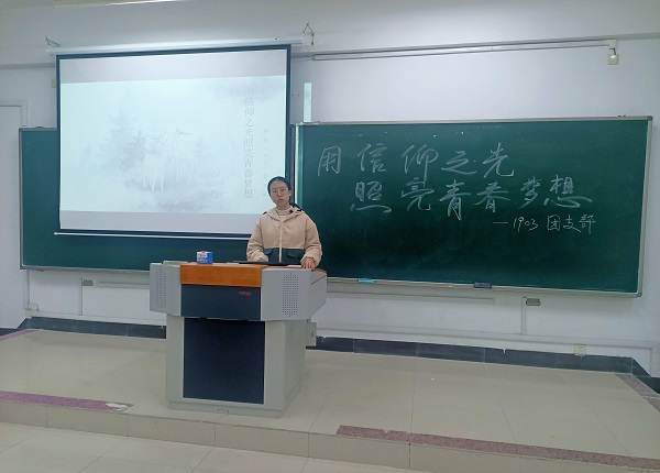 翔宇网12月4日电(记者 程昶斌)12月3日晚八点,数统1903班在理南203举办“用信仰之光照亮青春梦想”主题班团活动。活动由团支书杨子萱主持。