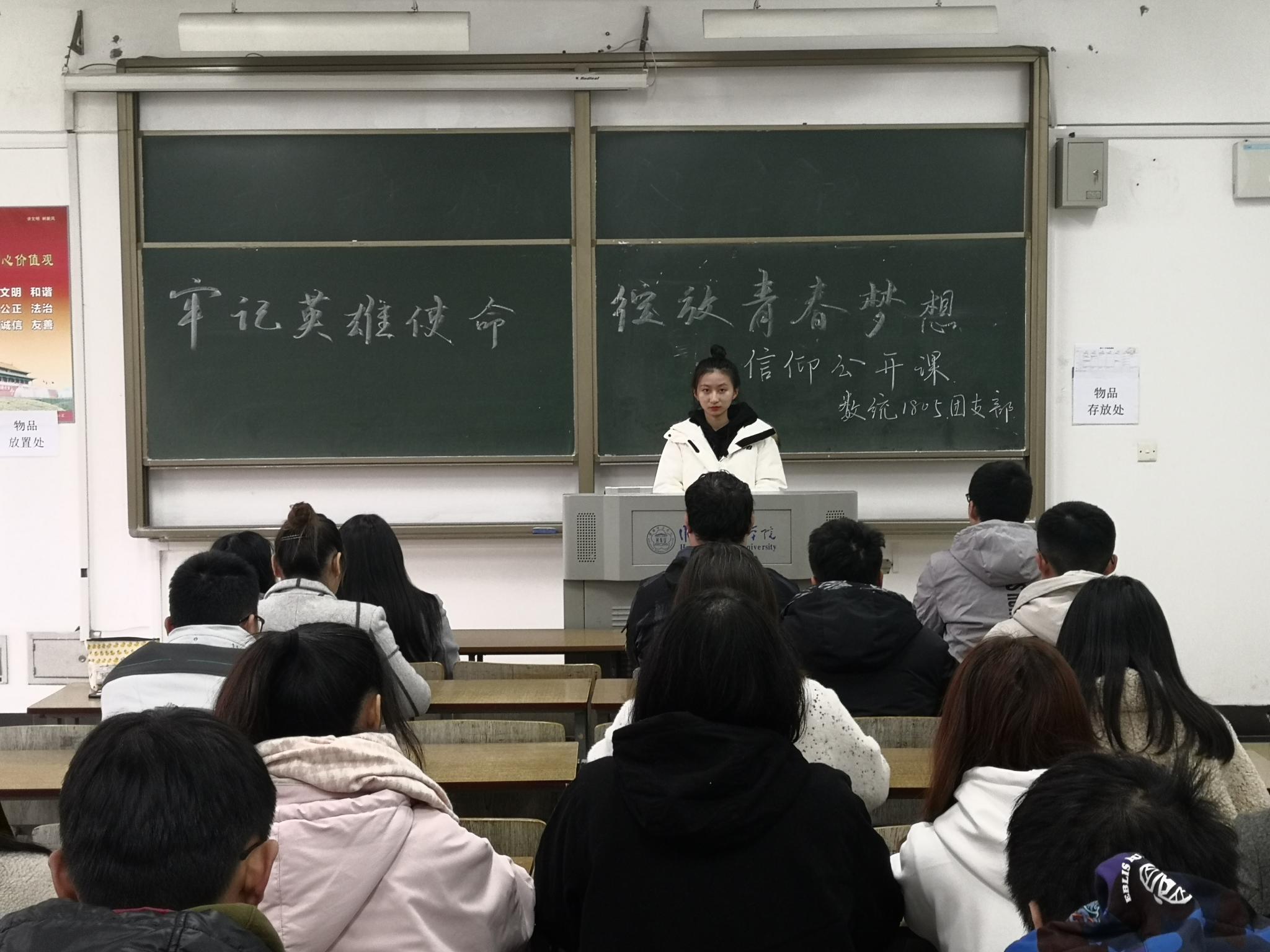 翔宇网11月26日电(记者 龙昕媛)11月25日,数统1805班在崇文1-307开展“牢记英雄使命,绽放青春梦想”信仰公开课。活动由1805班龙昕媛主持。