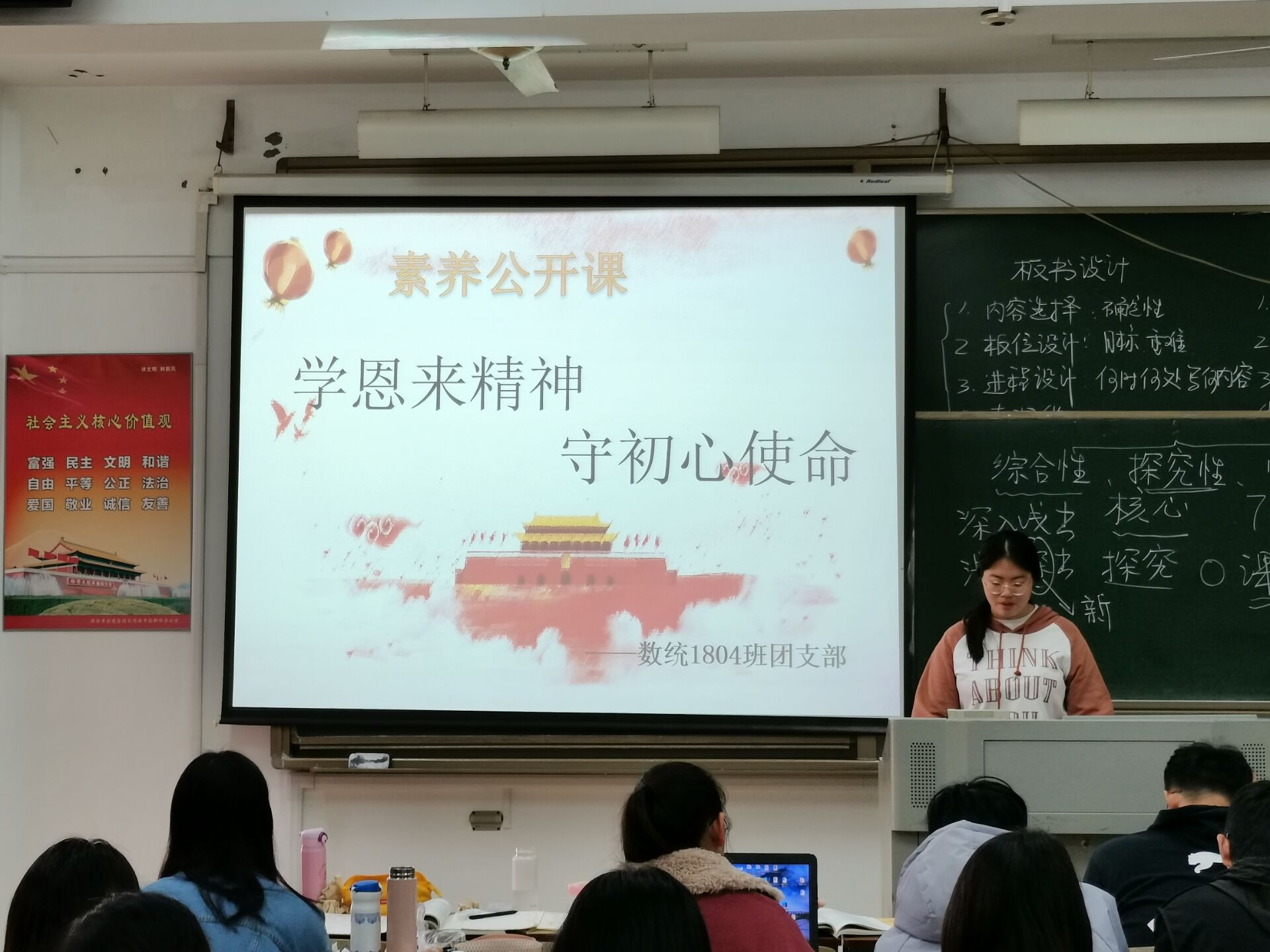 翔宇网11月12日电(记者 张雨倩)为深入贯彻恩来精神,践行社会主义核心价值观,云顶国际yd3331804团支部于11月11日在崇文楼1-309举办素养公开课主题团日活动。活动由团支书吴欣沂主持进行。