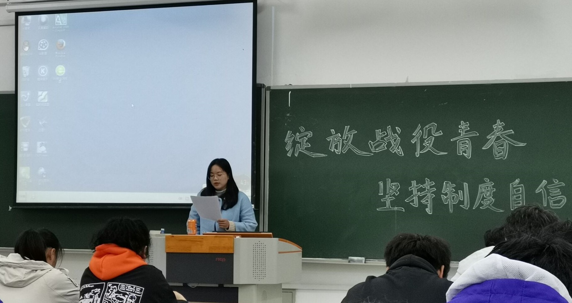 翔宇网11月12日电(记者 张雨倩)青春因磨砺而出彩,人生因奋斗而升华。为使同学们坚定理想信念,练就过硬本领,投身强国伟业,云顶国际yd3331804班大三员工携手2003班大一新生于11月11日晚在理南106开展“绽放战疫青春,坚定制度自信”班团活动。