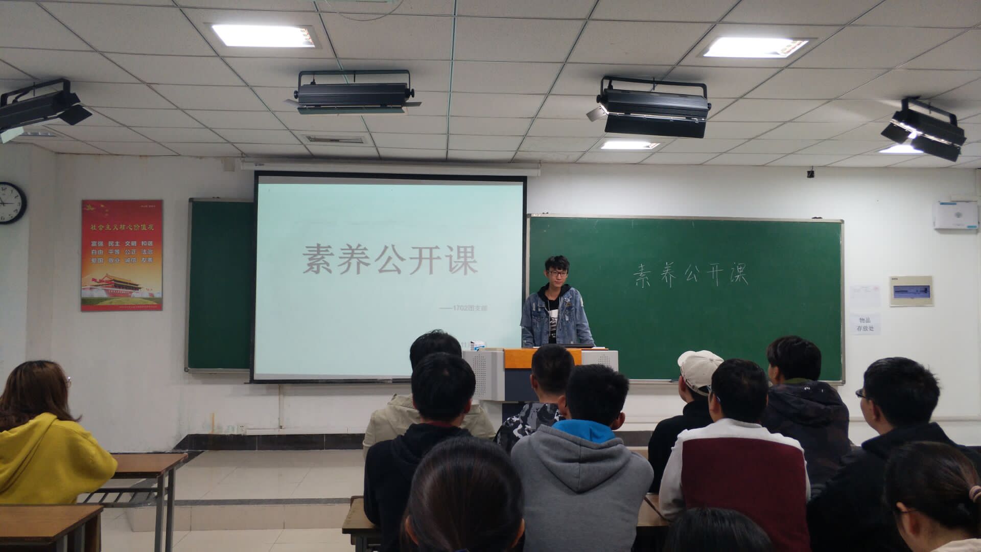 本次公开课以“如何良好建设团支部”为核心,以“如何当好员工干部”“如何提高老员工自身素养”为主题内容举行。首先,戚冉同学向同学们介绍了本次素养公开课所选择的几位代表同学,对1702班素养公开课计划开展情况做了介绍,并对未来的团支部工作表达了殷切期望。团支书周群颖引导在座同学及员工干部坚定理想信念,树立远大目标,切实做到素养的提高进步。随后,三位代表同学——校三好员工张弘毅,校优秀员工干部季东,班长孙棒棒以答辩的形式从各方面介绍了本班的建设情况,其中包括班级制度建设、班风建设、思想教育、素质拓展等。最后,各位代表与现场同学进行了互动交流,内容涉及创新学习,志愿服务等问题。