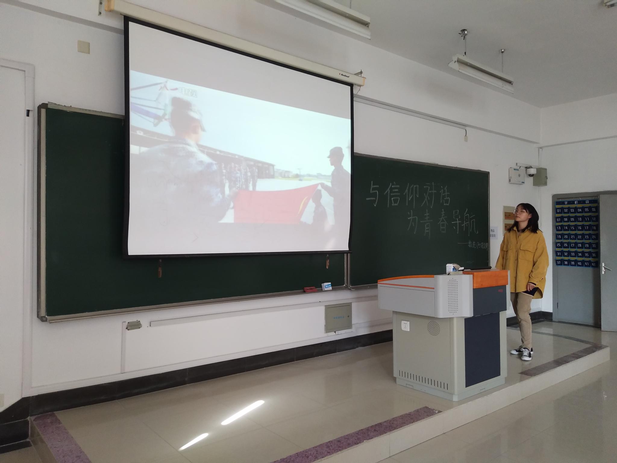 活动伊始,吴宣仪首先从“什么是信仰”、“一个人为什么要有信仰”、“以及信仰的重要性”三个方面阐述说明。随后,吴宣仪强调,我们应以党的意识作为信仰,了解党的性质和党的先进性,知晓党成立的背景及建立过程,思考党在历史上发挥的作用,感叹党建立新中国和建设新时期的成就。最后,吴宣仪请同学们讨论自己心中对信仰的理解,并通过视频《信仰》,让同学们深入“学党史,知党情,跟党走”。