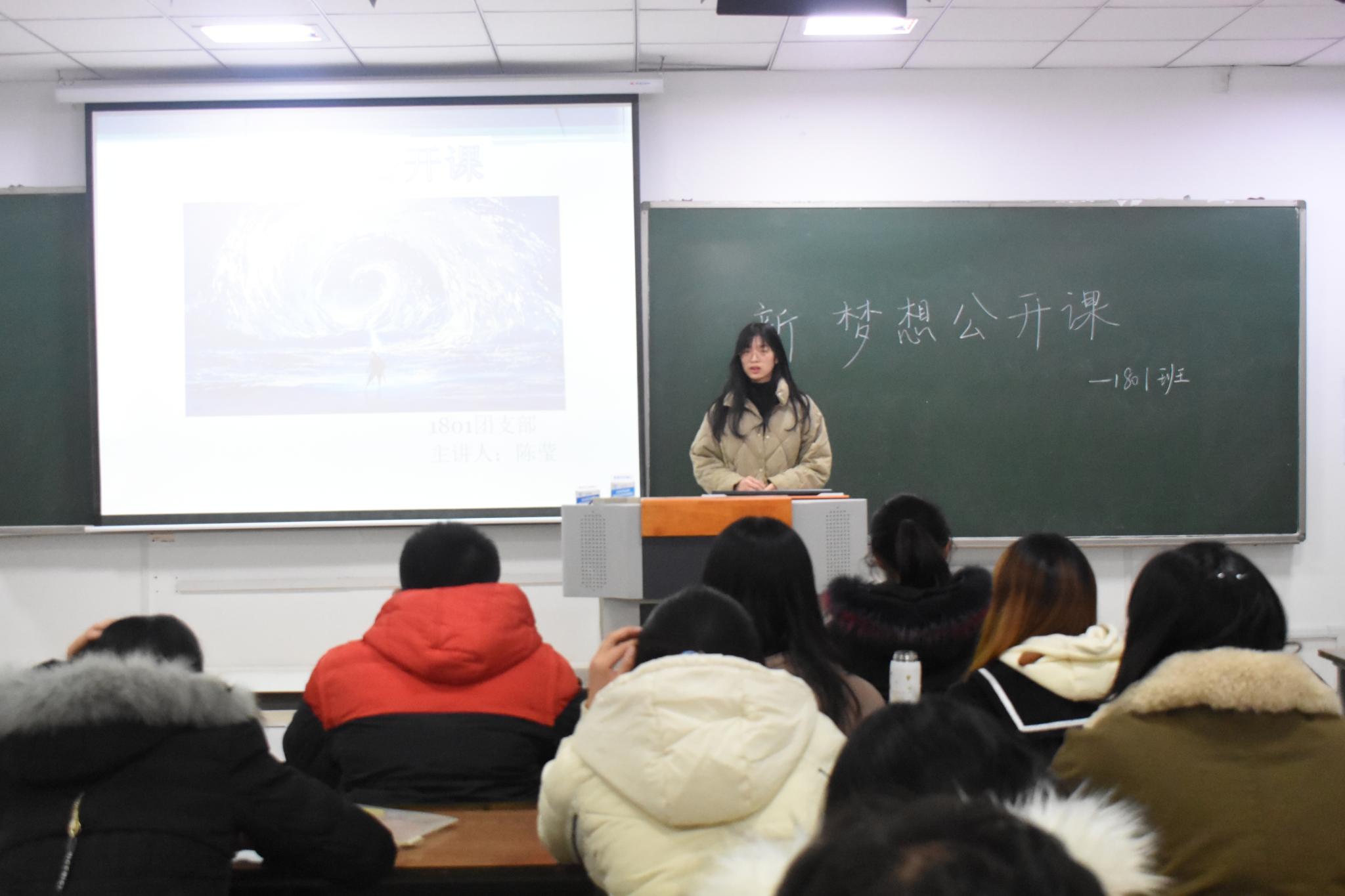 翔宇网10月29日电(记者 陈莹)为帮助同学们将目标视觉化,尽快找到发展方向。10月28日,云顶国际yd3331801团支部在理南202开展“梦想公开课”, 本次活动由团支书陈莹主持,1801班全体同学参加。