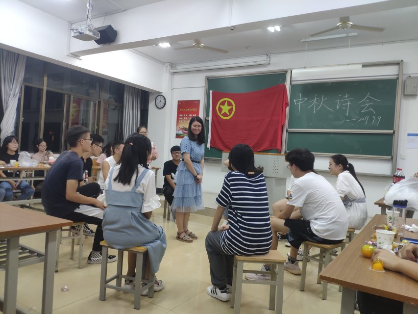 翔宇网9月10 日电(记者龙昕媛 杨轲旭)金秋送爽,月色皎洁。9月9日,为纪念入学一周年,让同学们感悟中秋传统文化,增进同学感情,数统1805班团支部组织同学们在崇文2-213举行“中秋诗会”班团活动。