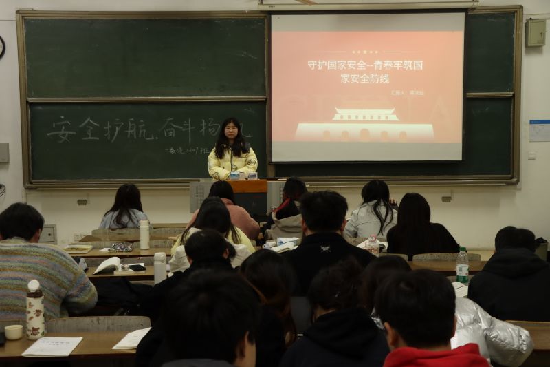 最后,团支书蒋欣灿以“守护国家安全,青春牢筑国家安全防线”为主题,为班级同学带来了一场生动的团课。团课上,团支书着重介绍了国家安全的重要性以及同学们在维护国家安全方面的责任和义务。通过生动的案例和深入的剖析,同学们深刻认识到国家安全与每个人的生活息息相关,纷纷表示未来将积极履行公民责任,为维护国家安全贡献自己的力量。