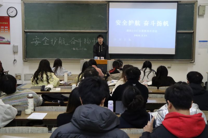 活动伊始,班长李顺达详细介绍了主题教育月的内容、意义以及安排,并组织了一场以“安全护航,平安筑梦”为主题的班会。班会上,李顺达强调了安全的重要性,通过生动的案例和详细的讲解,引导同学们认识到网络安全、交通安全、宿舍安全、人身安全等多方面的安全隐患,并提醒同学们在日常生活中要时刻保持警惕,学会自我保护。同时,同学们也积极分享了自己对于安全的看法和经历,进一步增强了安全意识。