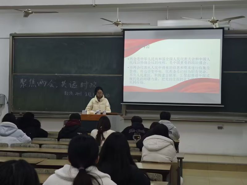 活动伊始,团支书褚露瑜详细介绍了两会的基本概念、重要意义以及发展历程,着重解读了2025年两会的重点内容。今年两会涵盖经济发展、民生保障、科技创新等多个领域,清晰阐释了国家在新一年的发展方向与战略布局。