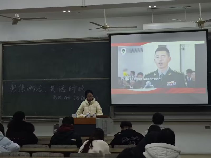 知识问答环节,团支书精心准备了一系列有关两会的题目,涵盖两会常识、2025年两会要点等。同学们踊跃举手,积极作答,现场气氛热烈非凡。对于回答正确的同学,团支书还送上了小奖品,这既是对他们知识储备的肯定,也进一步激发了大家学习时政的热情。
